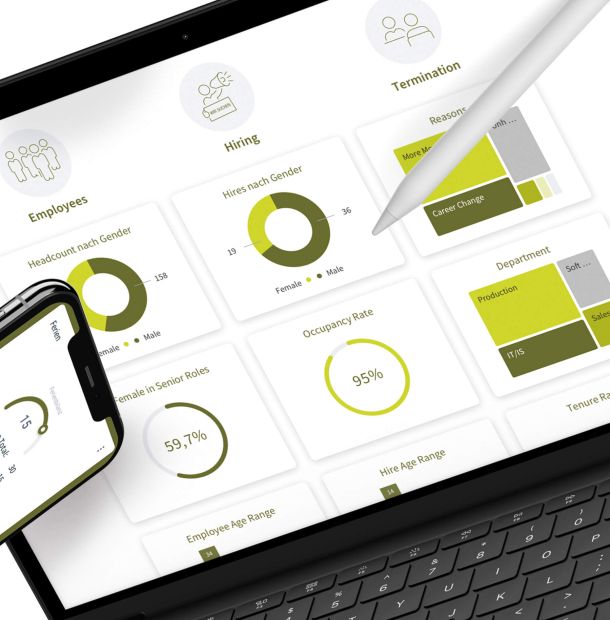Gemeinsam können wir das Kennzahlen-Set bestimmen, z.B. eine Übersicht der konsolidierten Arbeitsstunden, Krankheitstage, usw.
